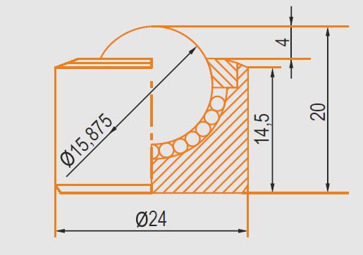 | Art.-Nr. | Kugel Ø | Gehäuse | Laufkugel | Außendurchmesser | Bauhöhe | Trag- fähigkeit | Eigen- gewicht |
